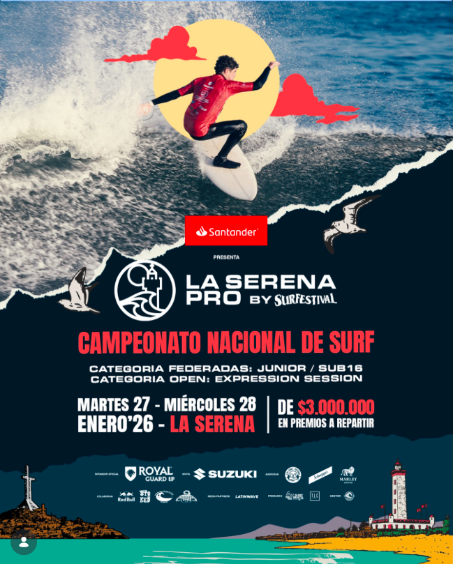 La acción comienza los días 27 y 28 de enero en la Av. Del Mar, específicamente en la Escuela de Surf Poisson. La Serena Pro 2026 by Surfestival, regresa a uno de los puntos más emblemáticos del circuito veraniego.