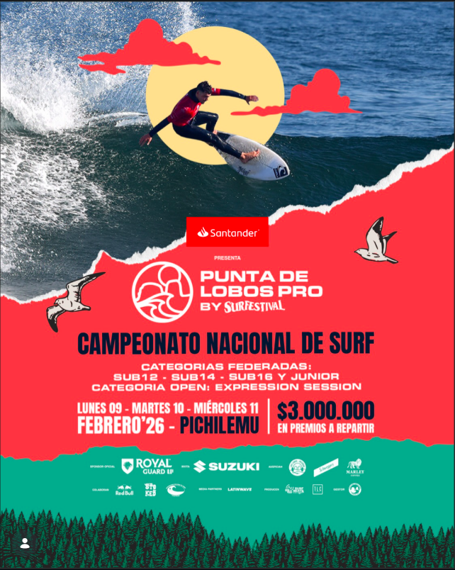 Siguiendo con el calendario, del 9 al 11 de febrero, la competencia se traslada a la Región de O’Higgins para el Punta de Lobos Pro 2026. En el mítico sector de “El Mirador de Punta de Lobos”, los mejores surfistas del país se enfrentarán en la 3ra fecha del Circuito Nacional, evento que servirá de antesala al Surfestival Pichilemu a realizarse el 14 de febrero.