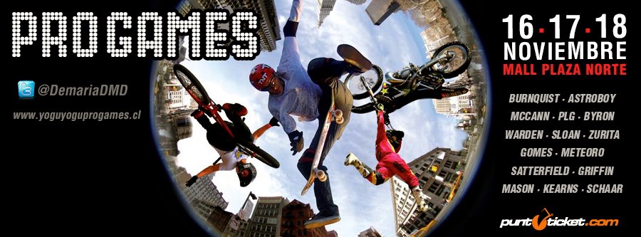 El 16, 17 y 18 de Noviembre, a las 21:00 hrs.  en Mall Plaza Norte se realizará el mayor espectáculo de deportes extremos que se haya hecho en nuestro país. Basada en el éxito de los Progames 2011 la versión del 2012 promete ser aún más atractiva y sorprendente.