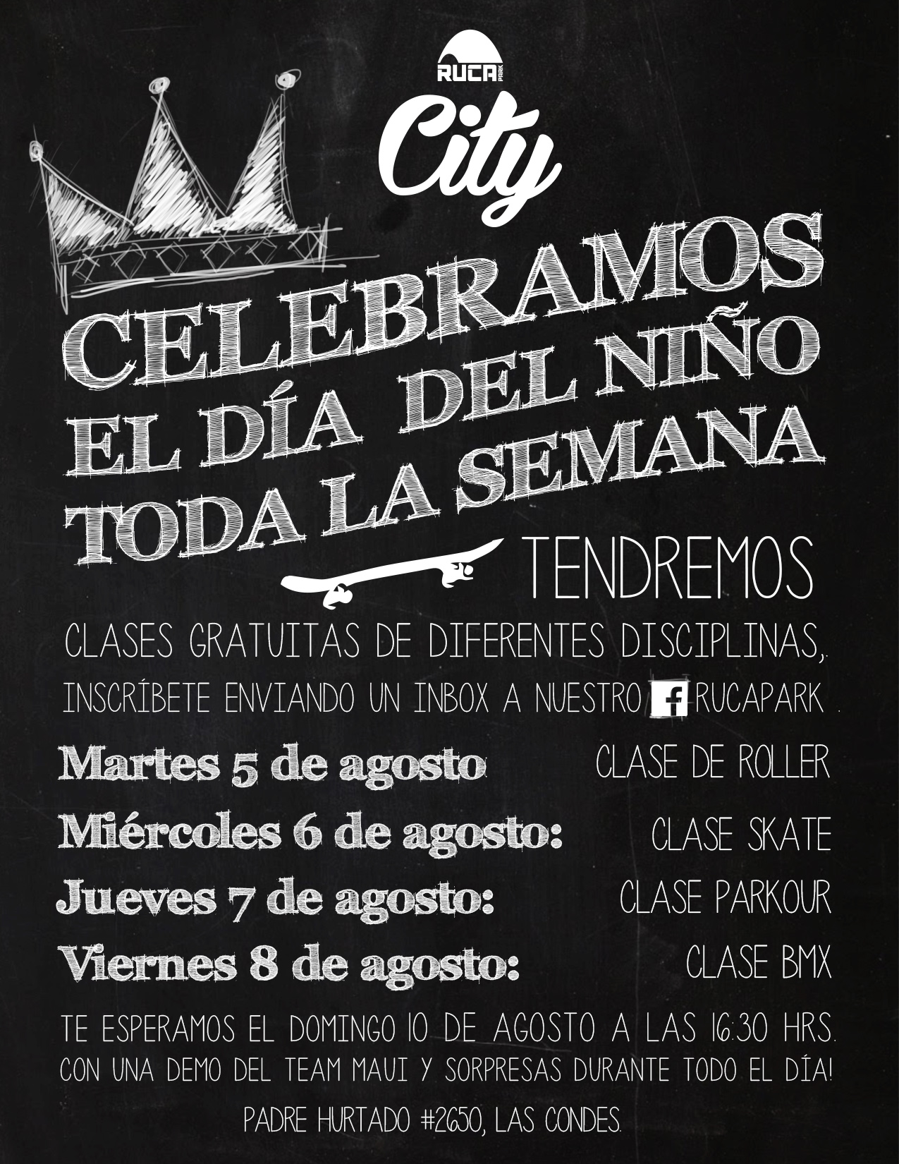 Sólo debes escribir a través de nuestro Fan Page de Facebook de RucaPark e inscribirte en la clase de la disciplina que elijas, promoción válida sólo en Ruca City,  completamente gratis: